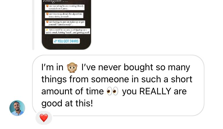 I simply post to my feed, post to my stories, and the right people will come to me, they engage with me, and they buy from me.